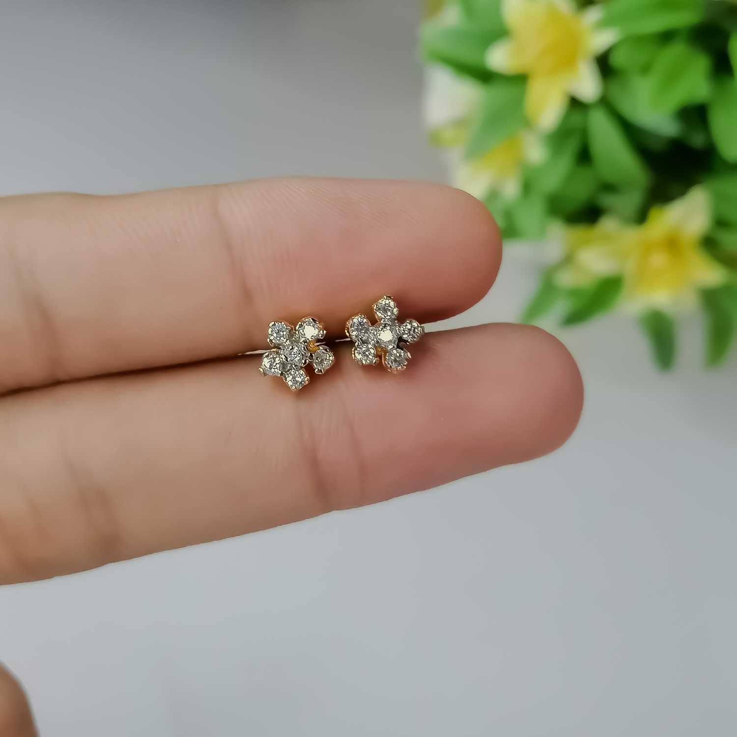 Elevate your jewelry collection with these Diamond Flower Earrings Gold Plated featuring a labret screw-back design for a secure and comfortable fit. Crafted with premium gold plating, these earrings shine beautifully while maintaining a luxurious and durable finish. The elegant flower pattern is adorned with sparkling diamond-cut stones that add a touch of brilliance to your everyday and party wear looks.